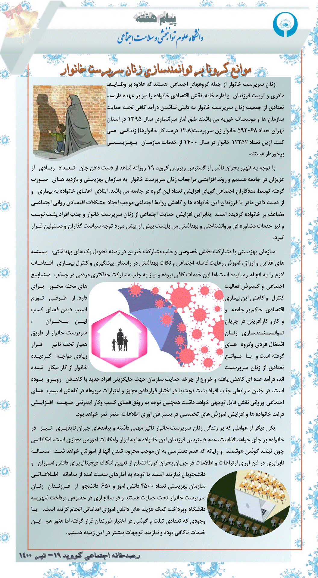 بررسی ابعاد گوناگون مشکلات زنان سرپرست خانوار در دوران همه گیری کرونا و ضرورت حمایت اجتماعی از این گروه آسیب پذیر