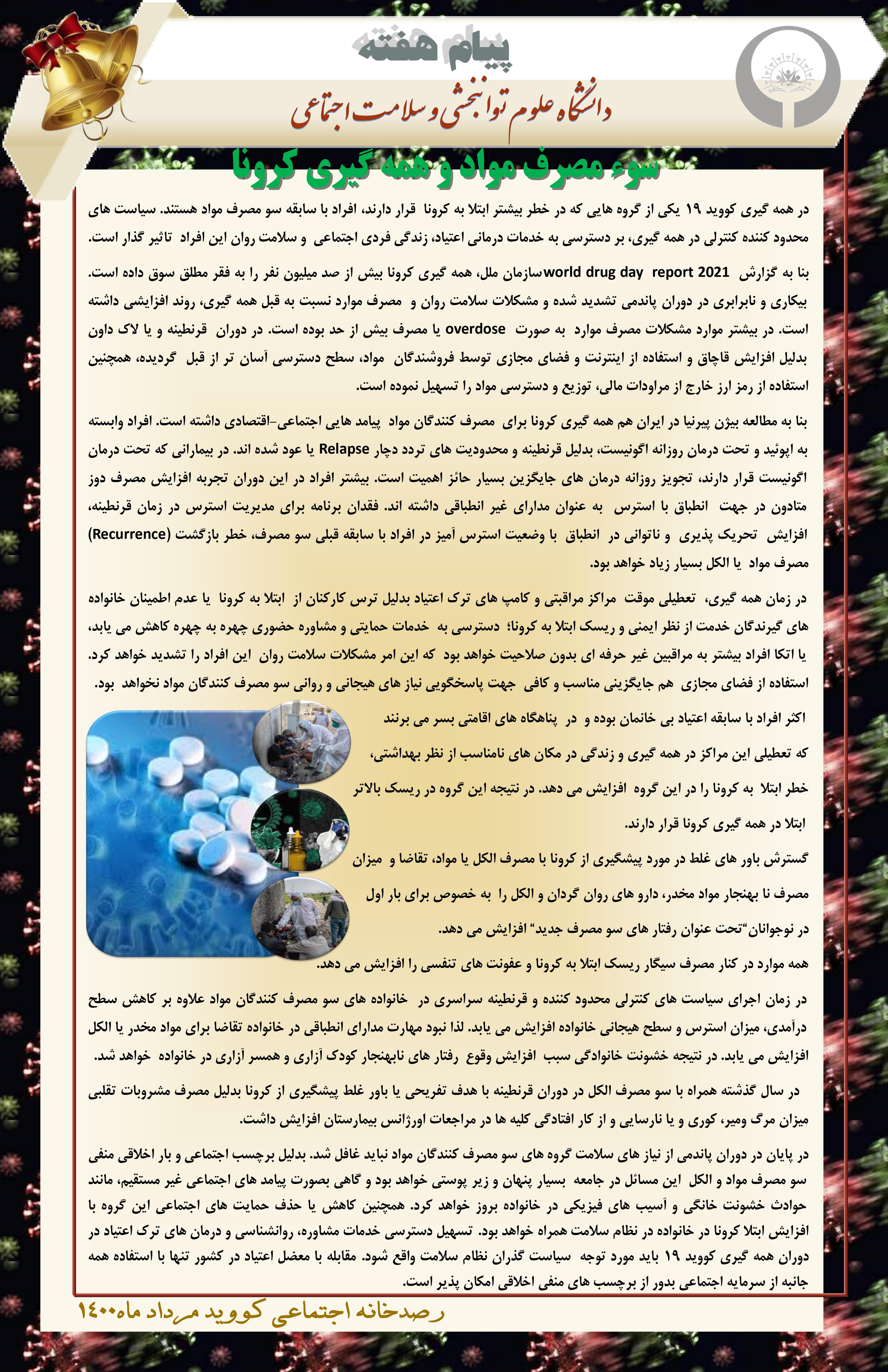 بنا به گزارش سازمان ملل، در دوران همه گیری کرونا مصرف مواد به صورت overdose یا مصرف بیش از اندازه بوده است.