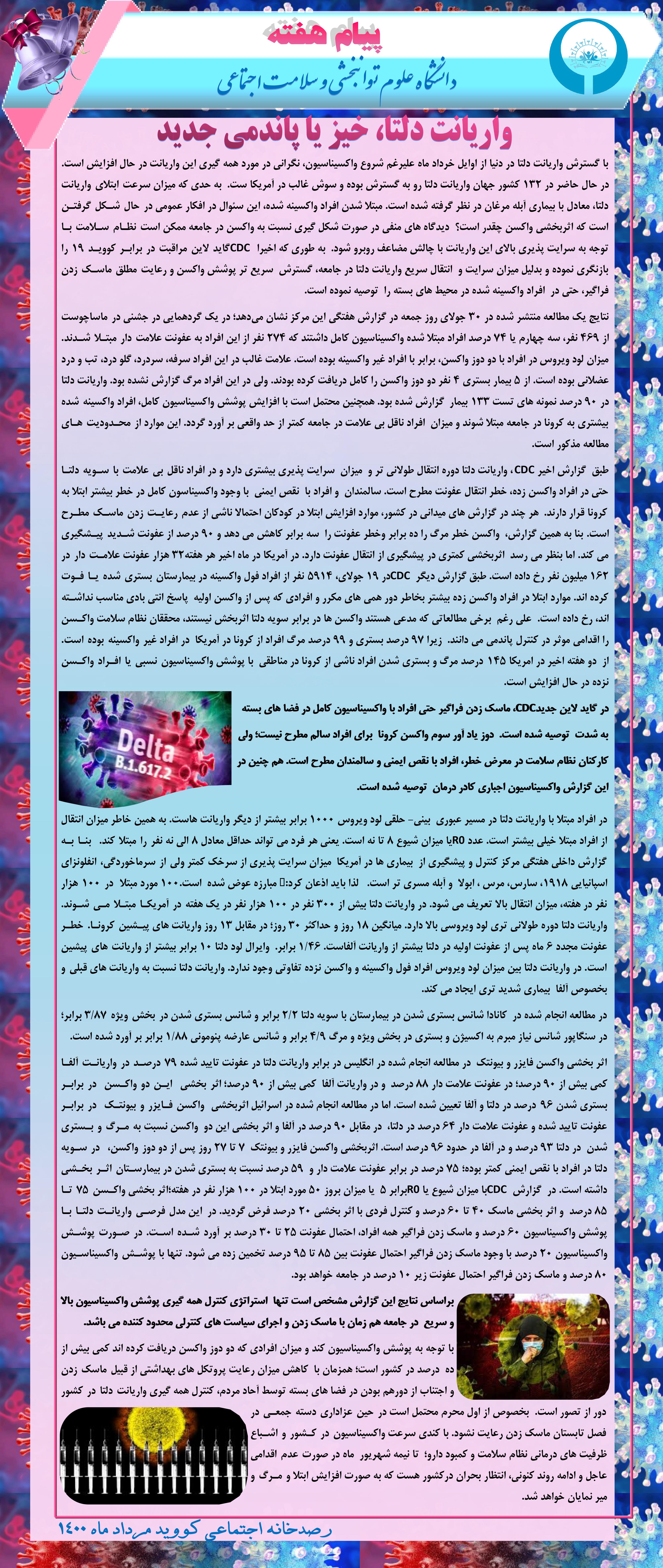 تنها استراتژی کنترل همه گیری واریانت دلتا، پوشش واکسیناسیون بالا و سریع جامعه هم زمان با ماسک زدن و اجرای سیاست های کنترلی محدود کننده است.