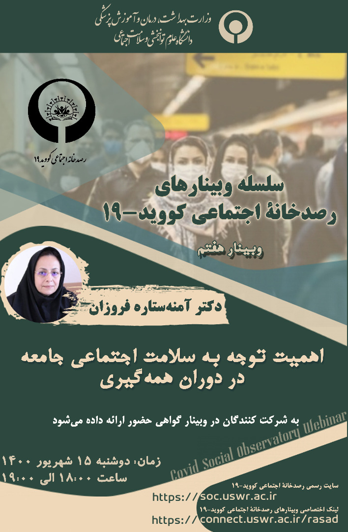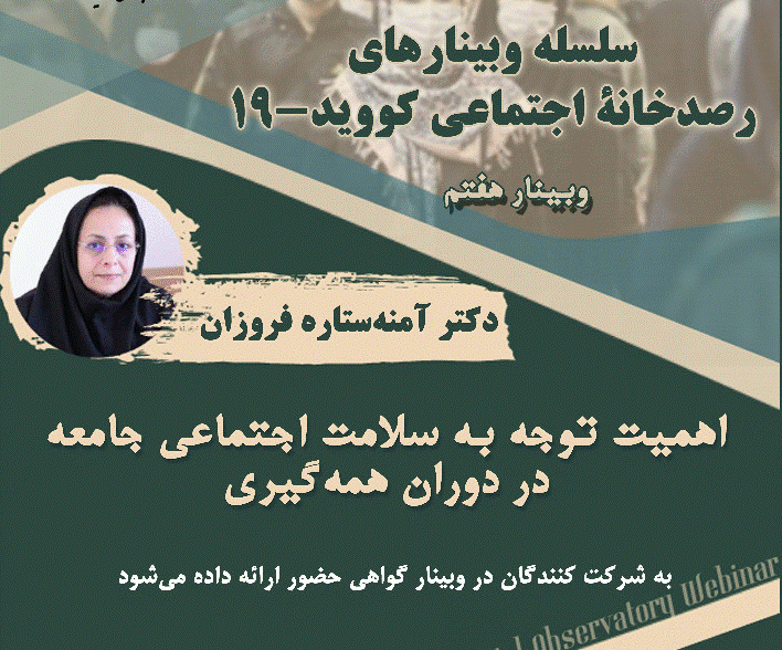 وبینار هفتم رصدخانه اجتماعی کووید-19 با عنوان: اهمیت توجه به سلامت اجتماعی جامعه در دوران همه گیری