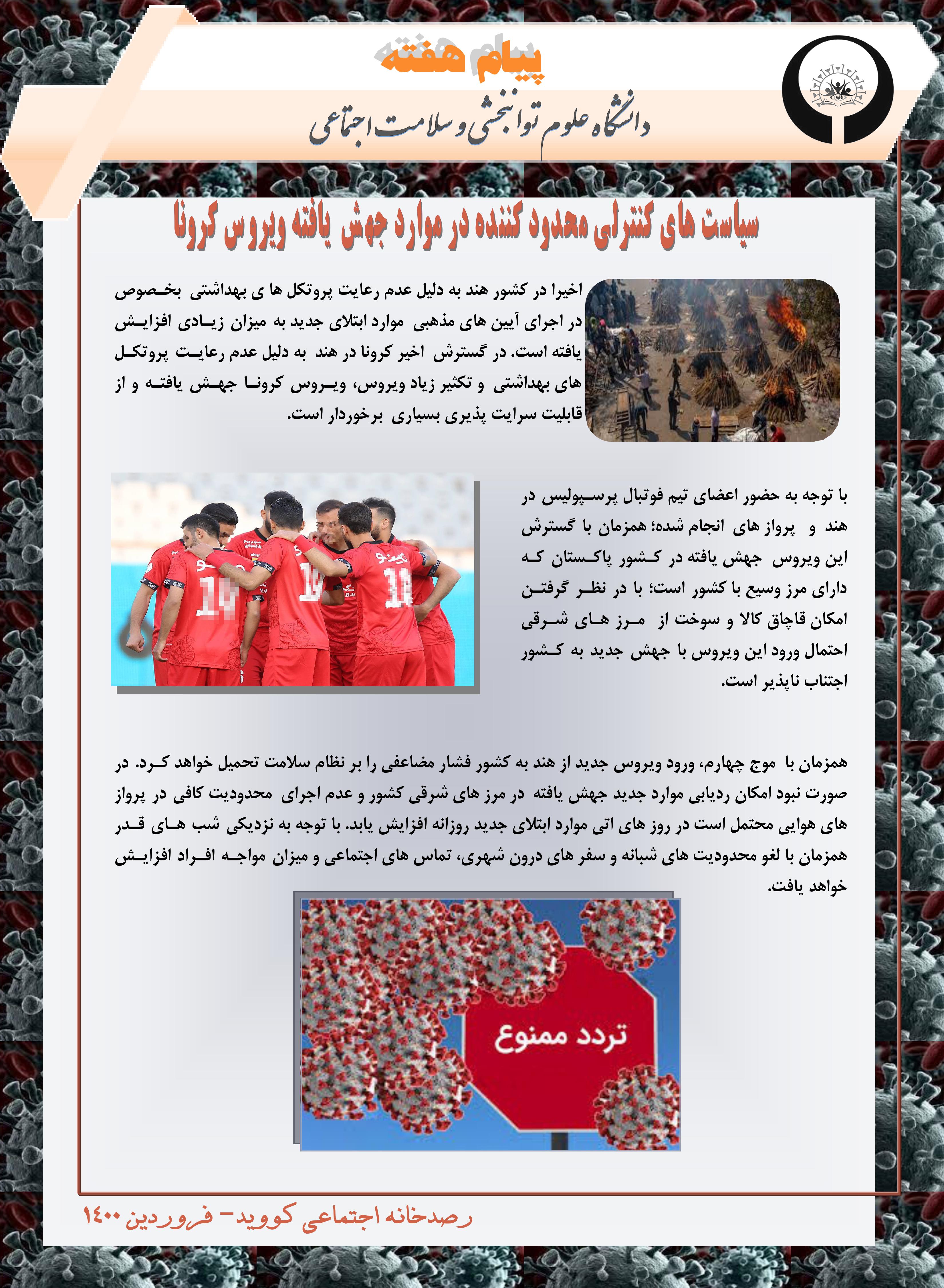 توجه به پیشگیری از ورود ویروس جهش یافته به ایران با توجه به قابلیت سرایت پذیری بالای این سویه ضروری است.