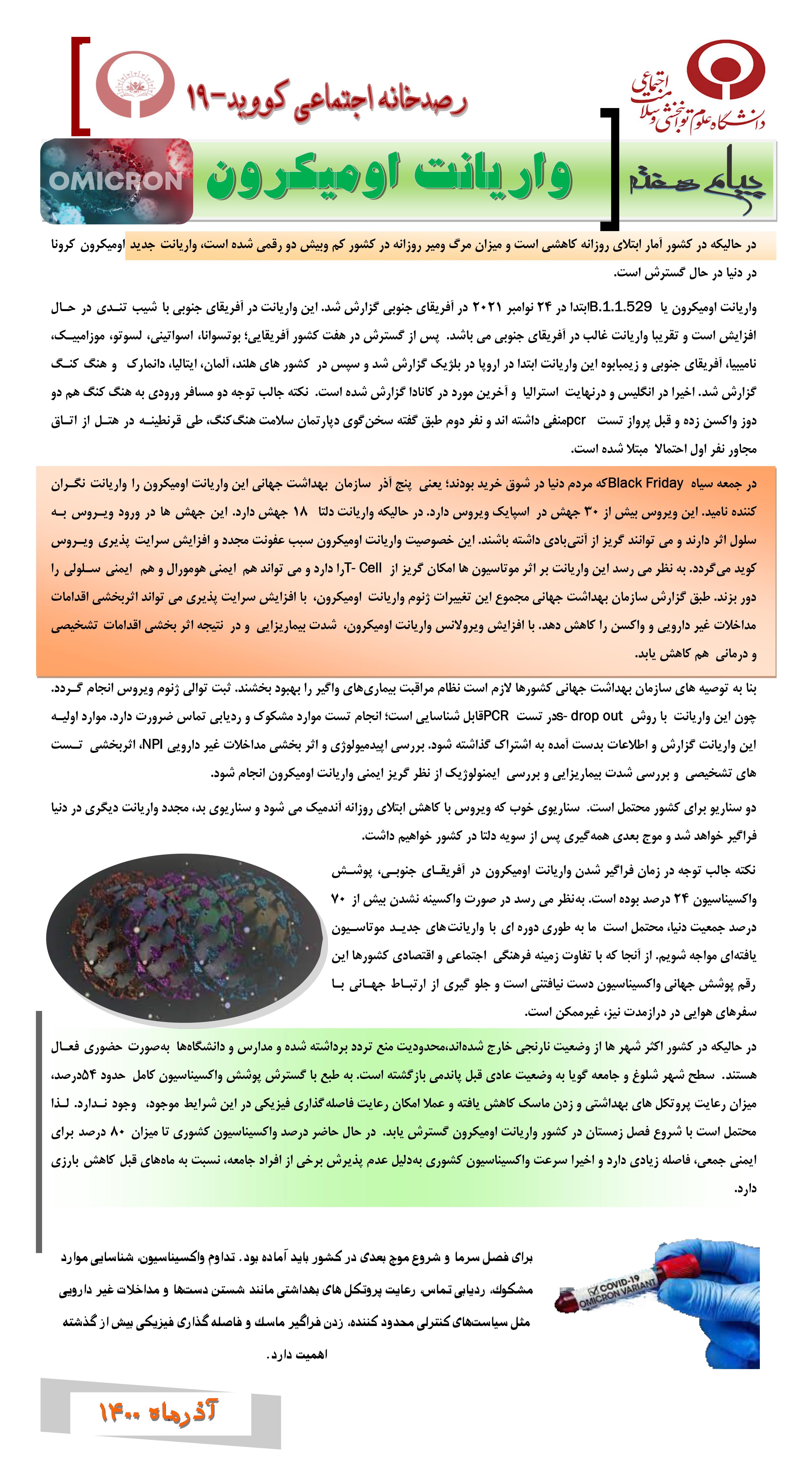 در حالی که در اکثر شهرهای کشور، محدودیت ها برداشته شده و فعالیت های اجتماعی از سرگرفته شده، محتمل است در فصل زمستان، در کشور، واریانت اومیکرون گسترش یابد.