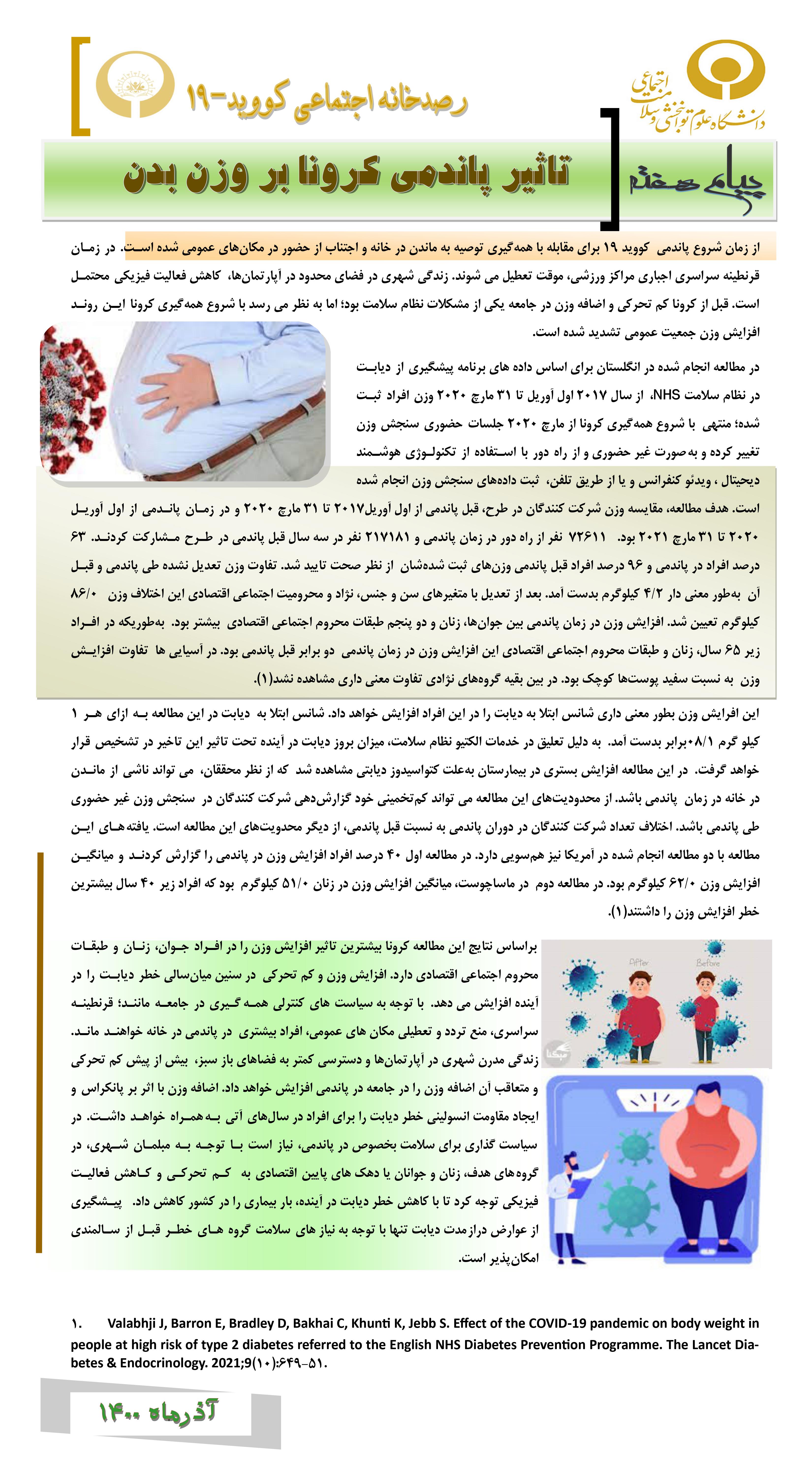 از جمله پیامدهای قرنطینه دوران پاندمی کووید 19، افزایش وزن بوده است.
